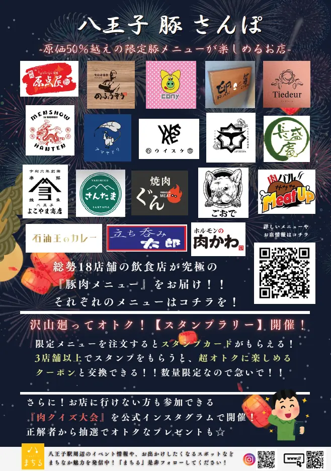 このイベントは「八王子市まちなか魅力づくり支援補助金」を活用して実施。豚料理を味わいながら街歩きを楽しめる内容となっています。