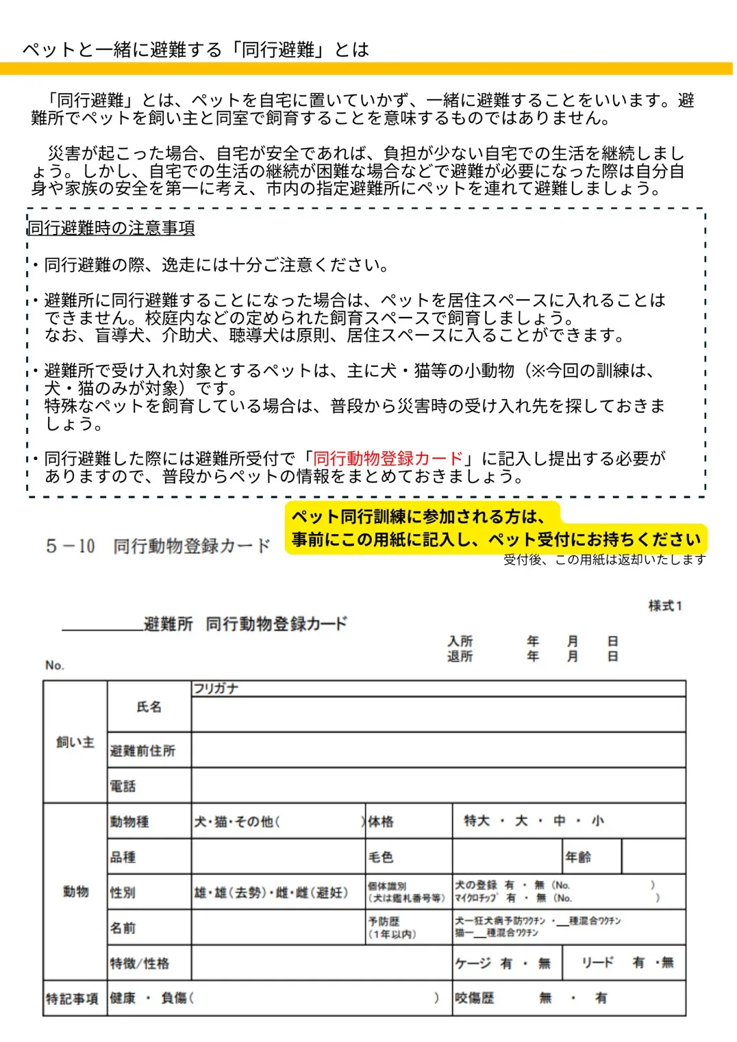 ペット同行避難訓練のお申込みはGoogleフォームから【申込フォームはこちら↗】